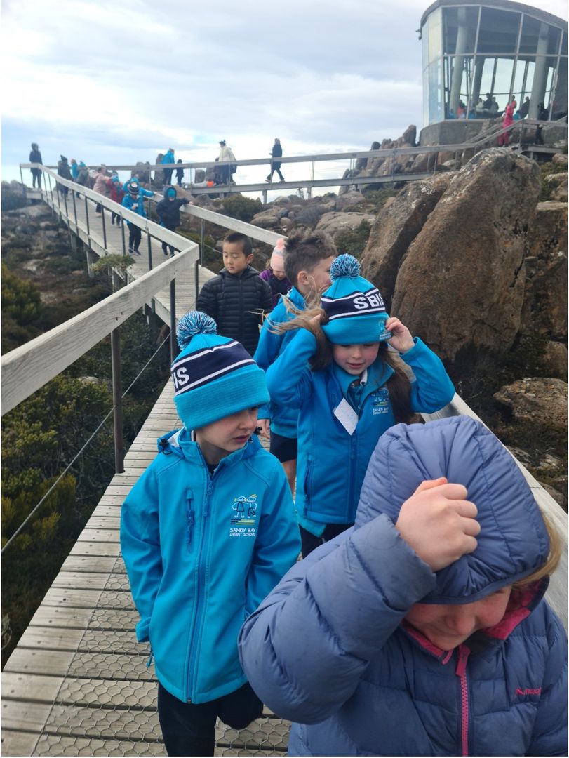 Prep students were super excited to go on a bus tour of all the places they’d been learning about at school and we drove past the landmarks we made models of for our exhibition. We toured past Wrest Point Casino, along Salamanca Place, past the waterfront, past the Nuyina, over the Tasman Bridge (where one student exclaimed “this is the best day of my life!”) before beginning our ascent up the mountain! The top of kunanyi was wildly windy and cold! It was such an experience! We staggered our way into the lookout and some students braved the wind to experience the lookout. “Everything looks so small! It’s like everything is tiny and we’re the big giants!”